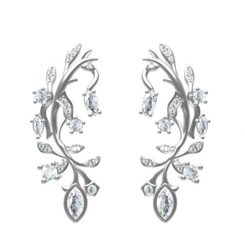 ChriSONGS Earrings – Leaf Vine Cubic Zirconia Stud Earrings with Teardrop Drop (925 Silver Post)